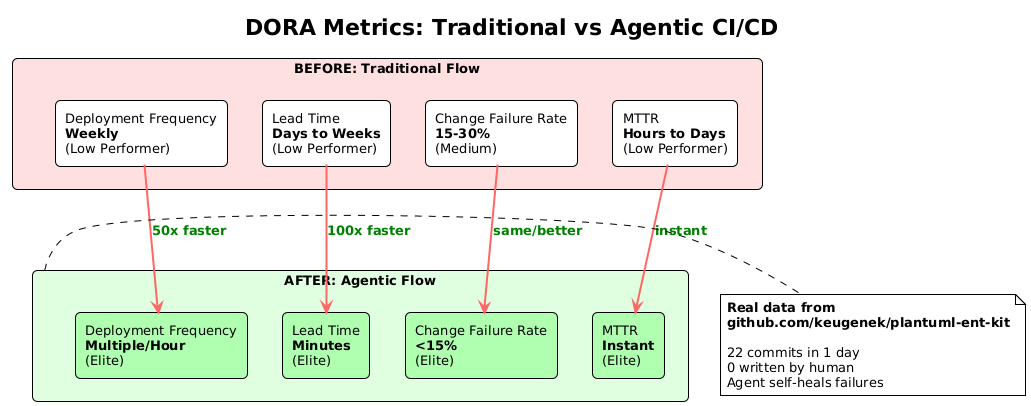 This repository demonstrates Elite-tier DORA metrics through agentic CI/CD: